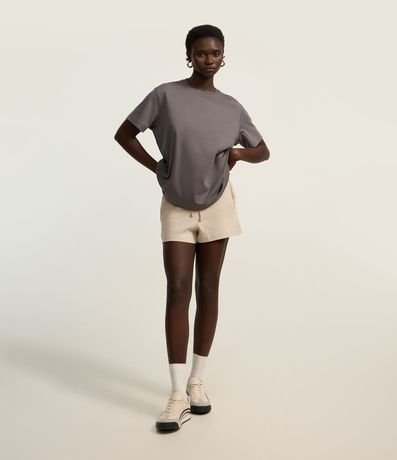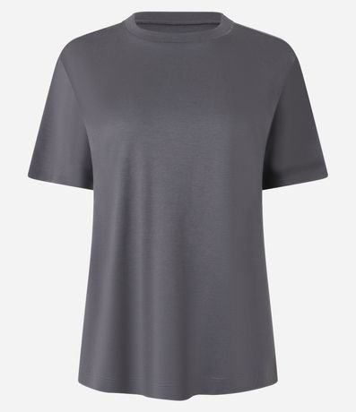 Ref: Camiseta feminina confeccionada em algodão certificado BCI e boas práticas ambientais. Modelo boxy com gola redonda, manga curta e cava deslocada, garantindo conforto, estilo moderno e moda responsável para o dia a dia.