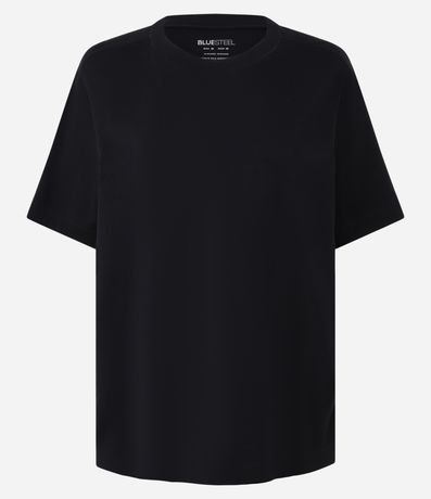 Ref: Camiseta feminina confeccionada em algodão certificado BCI e boas práticas ambientais. Modelo boxy com gola redonda, manga curta e cava deslocada, garantindo conforto, estilo moderno e moda responsável para o dia a dia.