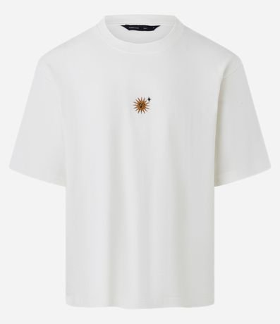 Ref: Camiseta boxy masculina em algodão com mini silk bordado que adiciona personalidade ao visual. Modelagem ampla e moderna, perfeita para compor looks urbanos. Produzida com algodão certificado BCI, unindo estilo e consciência ambiental.