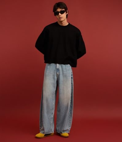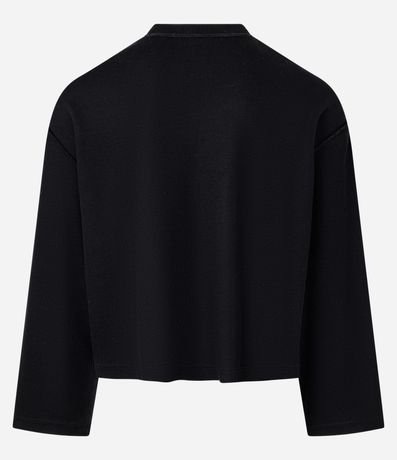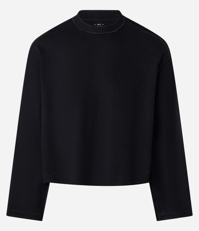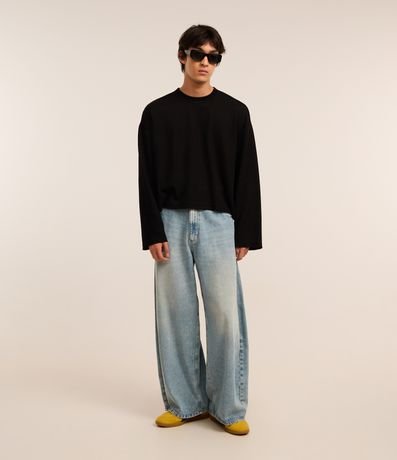 Camiseta masculina confeccionada em algodão mais sustentável com gola redonda, manga longa. Peça no modelo boxy com detalhes de recortes na costura em alto relevo.
