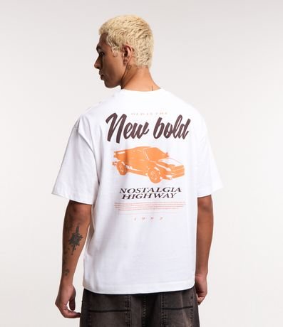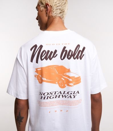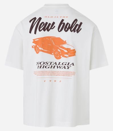 Ref: Camiseta boxy, malhão em algodão, manga curta, lettering Nostalgia no peito e estampa Car New Bold nas costas.