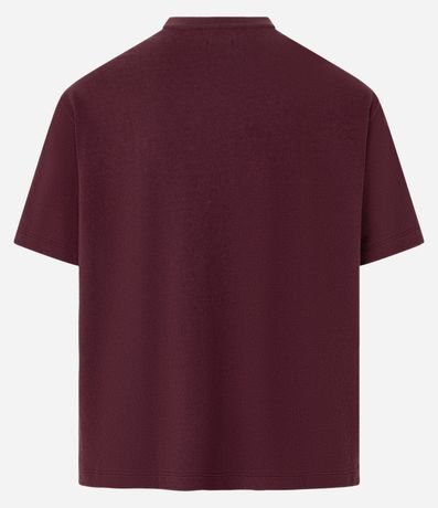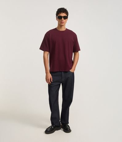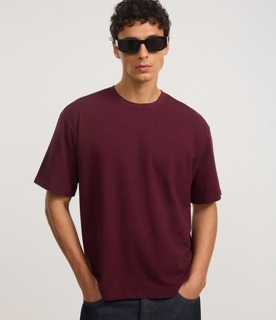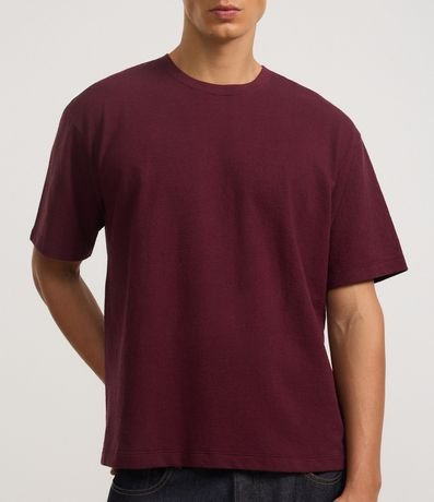 Camiseta masculina confeccionada em algodão mais sustentável no modelo boxy, possui gola redonda, manga curta e textura.