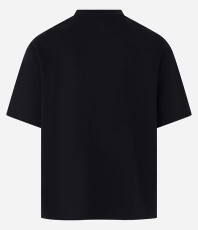 Camiseta masculina confeccionada em malhão, gola redonda e manga curta. Peça no modelo boxy com estampa do personagem Kuromi.