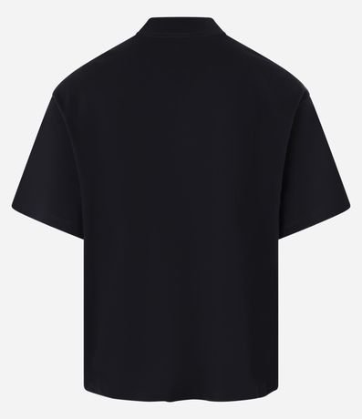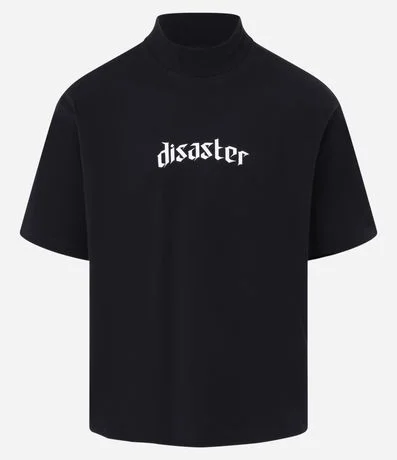 Camiseta masculina confeccionada em malhão mais sustentável, gola larga, manga curta. Peça no modelo t-shirt  boxy com estampa lettering disaster.