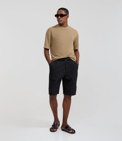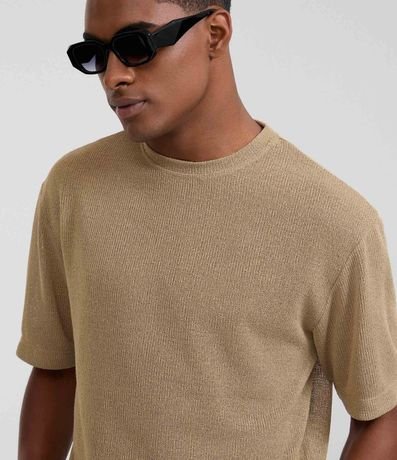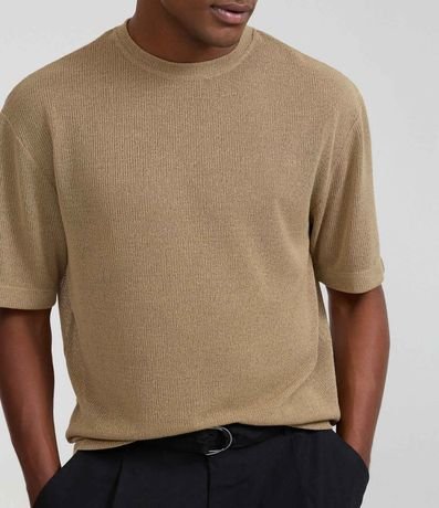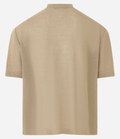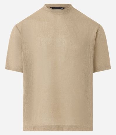 Camiseta masculina, modelo boxy, com gola redonda e manga curta. Peça confeccionada em tricô vazado, estilo irreverente e sofisticado.