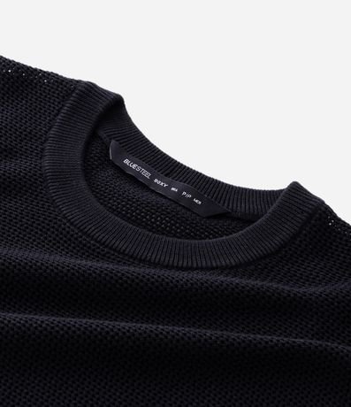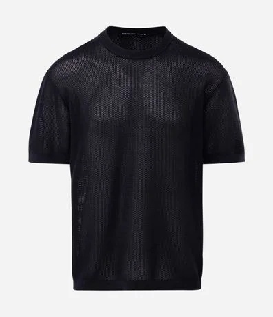 Ref: Camiseta em tricot vazado com fit boxy, oferecendo textura leve e visual moderno. Possui gola redonda, caimento confortável e toque macio. Ideal para compor produções casuais com estilo contemporâneo, confeccionado em algodão de certificado BCI para um processo mais sustentável.