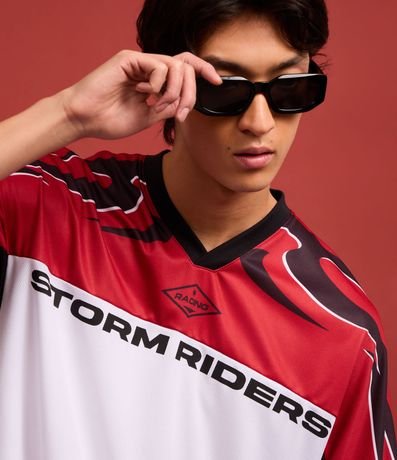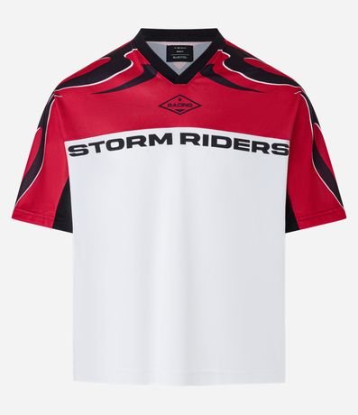 Ref: Camiseta masculina boxy esportiva, possui gola em v, manga curta, estampa vintage, tecnologia dry e estampa lettering.
