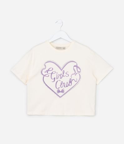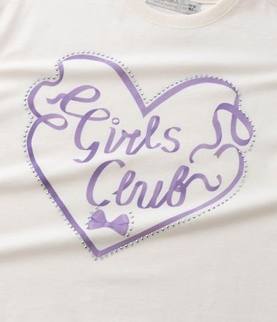 Camiseta Boxy Infantil com Aplicação de Strass Girls Club - Tam 5 a 14 Anos