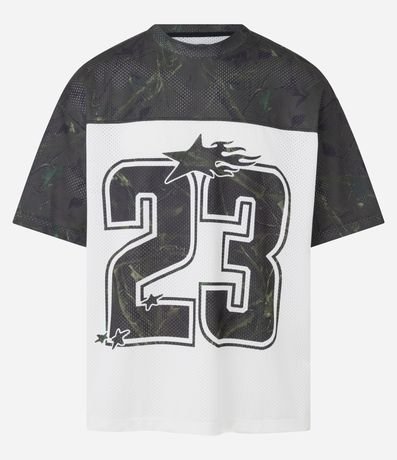 Camiseta Boxy Sportcore com Estampa Abstrata e Lettering 23