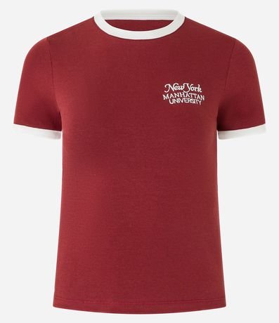 Ref: Camiseta modelo new t-shirt confeccionada em cotton de algodão BCI. A blusa estilo college tem a gola rendonda contrastante e estampa localizada Manhattan.