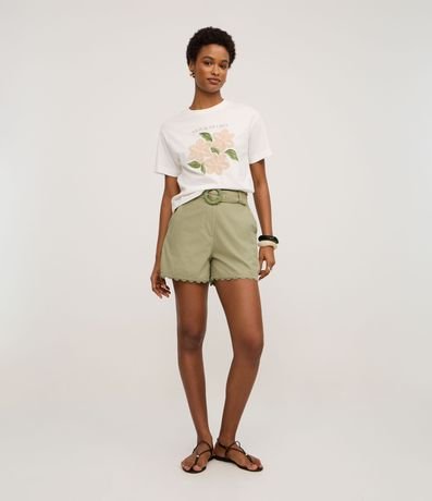 Camiseta com Estampa Floral e Bordado nas Flores