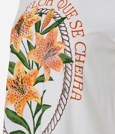 Ref: Camiseta em algodão com estampa floral localizada e aplicação de paetês que adiciona brilho sutil ao visual. Possui gola redonda, mangas curtas e modelagem confortável para o dia a dia. Peça versátil e atual, confeccionado em algodão de certificado BCI.