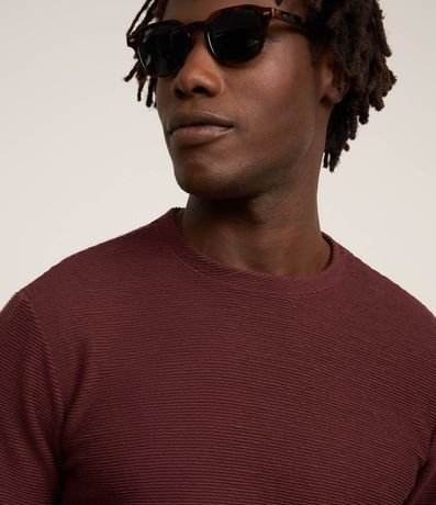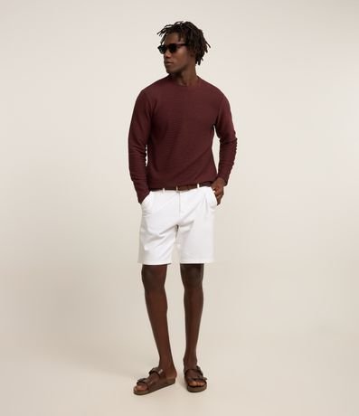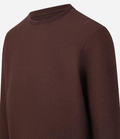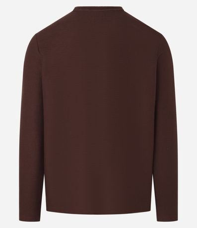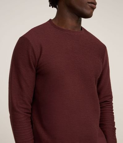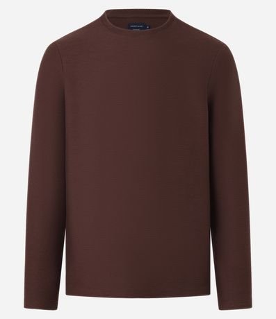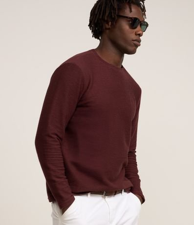 Camiseta masculina, com gola redonda, mangas longas e textura canelada.