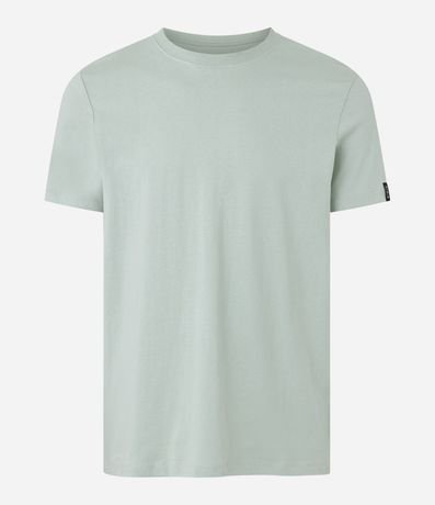 Ref: Camiseta masculina, de modelo comfort, básica, confeccionada em malha de maior gramtura, com gola redonda, mangas curtas e detalhe de etiqueta na manga.