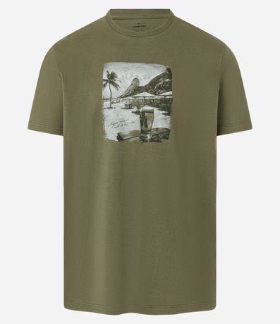 Ref: Camiseta masculina confeccionada em algodão mais sustentável, gola redonda, manga curta. Peça no modelo comfort com estampa de cervejinha na beira da praia.