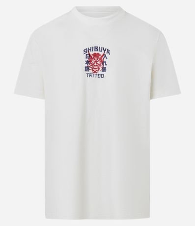 Ref: Camiseta masculina confeccionado em algodão certificado BCI e boas práticas ambientais. Modelo Comfort com gola redonda, manga curta e estampa localizada inspirada no japonismo máscara minimal. Ideal para um visual casual com conforto e liberdade de movimento.