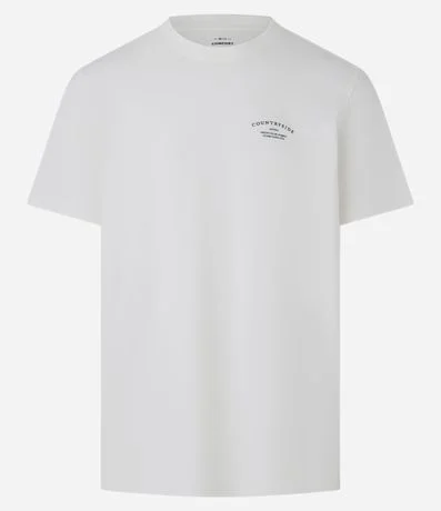 Camiseta masculina confeccionada em algodão mais sustentável, gola redonda e manga curta. Peça no modelo comfort com estampa lettering localizada e nas costas estampa de paisagem abstrata.