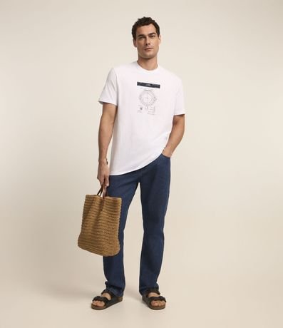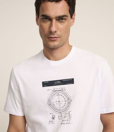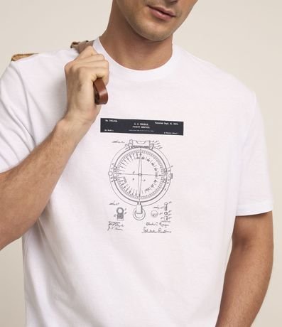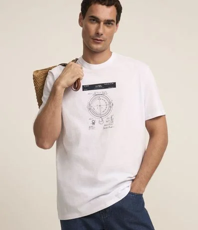Ref: Camiseta comfort masculina, confeccionada em tecido meia malha, com gola redonda, mangas curtas e estampa de bússola.