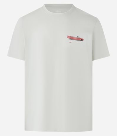 Ref: Camiseta masculina confeccionada em algodão mais sustentável, no modelo comfort. Possui gola redonda, manga curta, estampa de carro e estampa lettering "Los Angeles" frontais e traseiras.