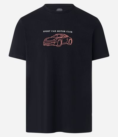 Ref: Camiseta masculina confeccionada em algodão mais sustentável, no modelo comfort. Possui gola redonda, manga curta, estampa de carros e lettering.