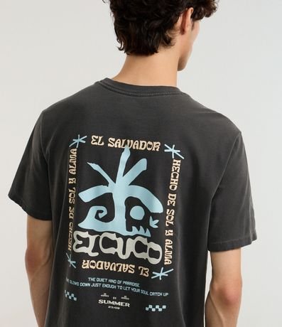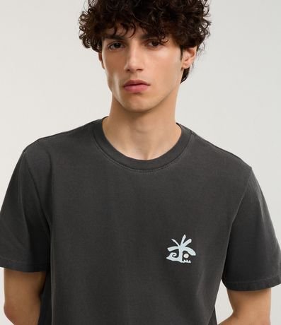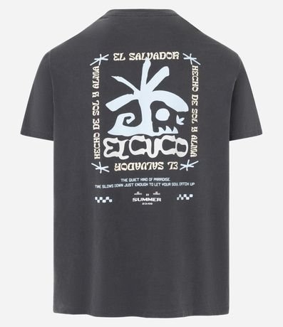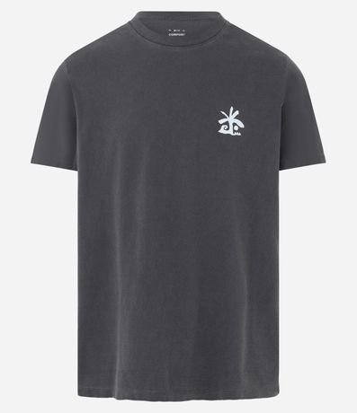 Ref: Camiseta masculina confeccionada em algodão mais sustentável, no modelo comfort. Possui gola redonda, manga curta, estampa de coqueiro e estampa lettering "El cuco".
