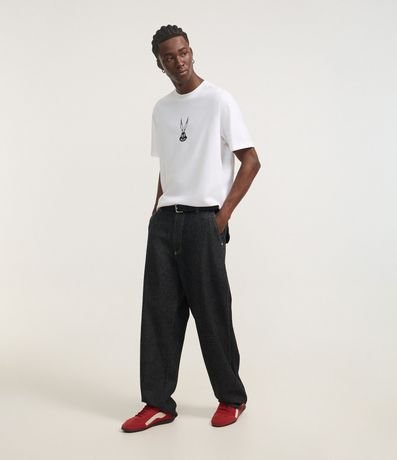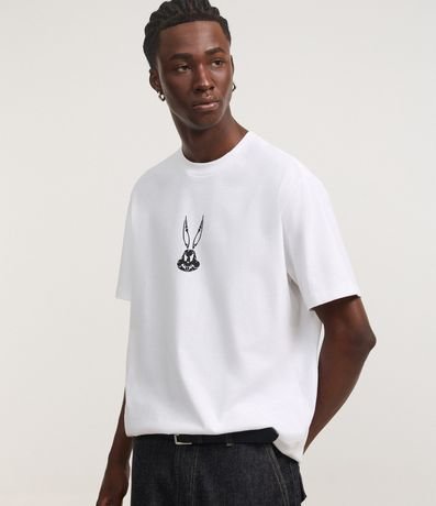 Camiseta masculina confeccionada em algodão mais sustentável através de boas práticas ambientais, no modelo comfort. Possui gola redonda, manga curta, estampa de esqueleto Perna Longa.