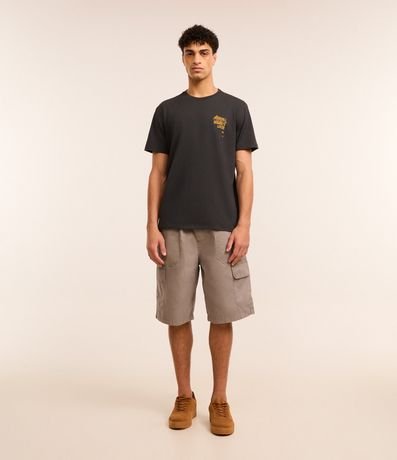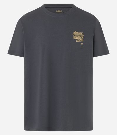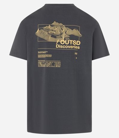 Ref: Camiseta masculina confeccionada em algodão mais sustentável através de boas práticas ambientais, no modelo comfort. Possui gola redonda, manga curta, estampa de mapa e estampa lettering "Outsd Discoveries".