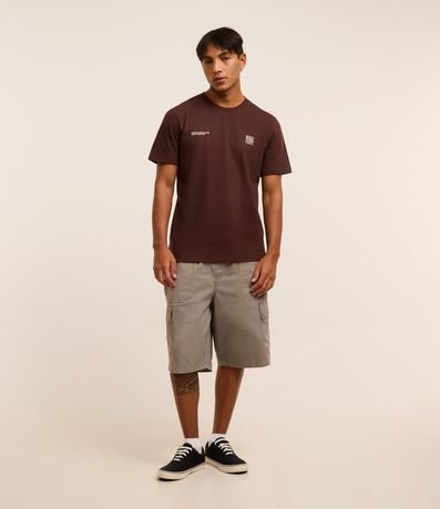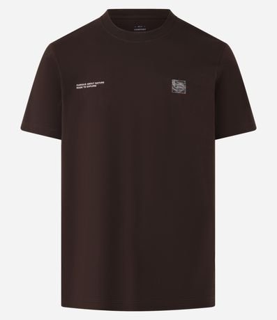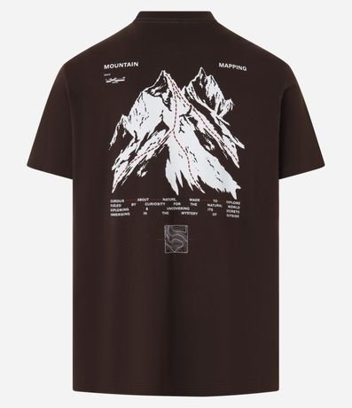 Ref: Camiseta masculina confeccionada em algodão mais sustentável, no modelo comfort. Possui gola redonda, manga curta, estampa de montanha e estampa lettering, frontais e traseiras.