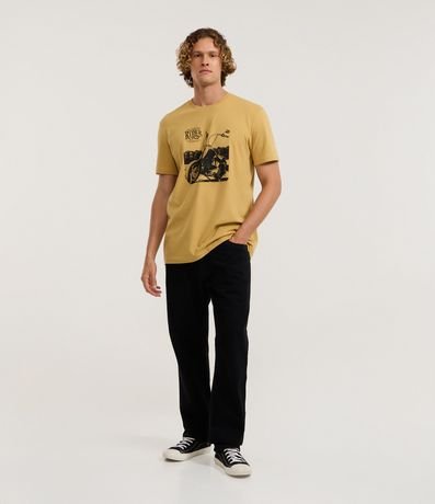 Camiseta masculina confeccionada em algodão mais sustentável com boas práticas ambientais, no modelo comfort. Possui gola redonda, manga curta, estampa de moto e lettering.