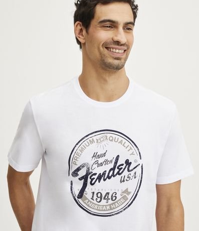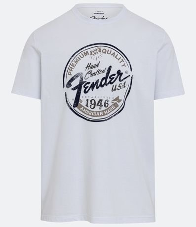 Ref: Camiseta comfort, em algodão, com logo design da marca Fender. Seu tecido em algodão mais sustentável garante leveza e conforto. Estilosa e arrojada, promove visuais de impacto muito facilmente.