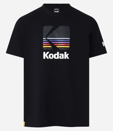 Ref: Camiseta masculina confeccionada em algodão mais sustentável, gola redonda, manga curta. Peça no modelo comfort com estampa localizada logo Kodak.