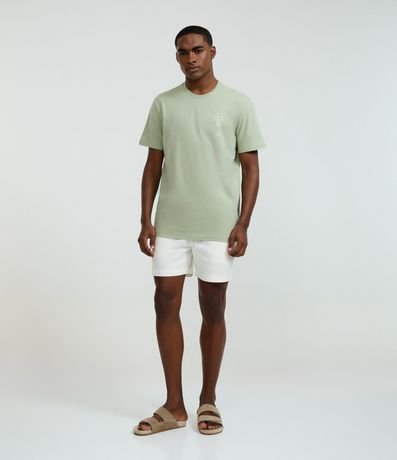 Camiseta comfort masculina em algodão com estampa lettering Espada de São Jorge, confeccionada com algodão certificado em processo mais sustentável.