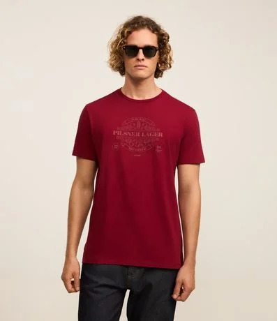Camiseta Comfort em Algodão com Estampa Lettering Frontal Pilsner Lager