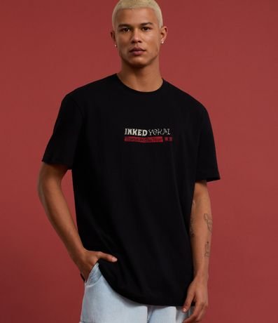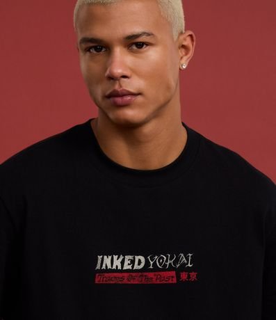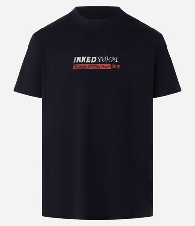 Camiseta masculina confeccionada em algodão mais sustentável através de boas práticas ambientais, no modelo comfort. Possui gola redonda, manga curta estampa e lettering "Inked Yokai" frontais e traseiras.
