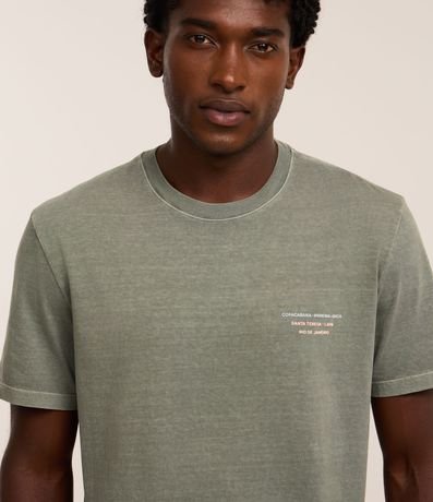 Camiseta masculina confeccionada em algodão mais sustentável com boas práticas ambientais em modelo comfort. Possui gola redonda, manga curta e estampa lettering com pontos turísticos do Rio de Janeiro.