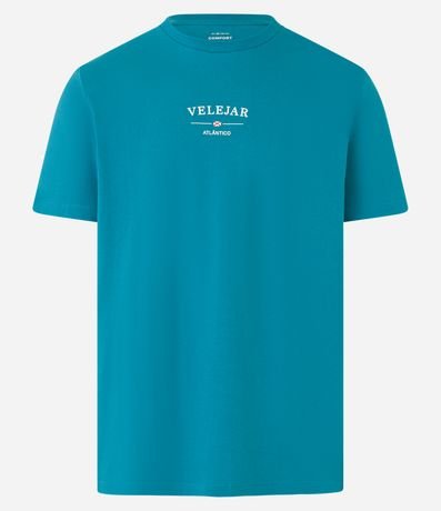 Ref: Camiseta masculina confeccionada em algodão mais sustentável através de boas práticas ambientais, no modelo comfort. Possui gola redonda, manga curta e estampa lettering.