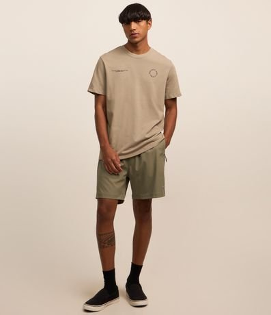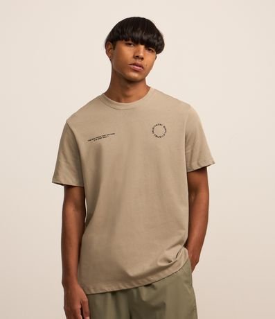 Ref: Camiseta masculina confeccionada em algodão mais sustentável, gola redonda, manga curta. Peça no modelo comfort com estampa lettering.
