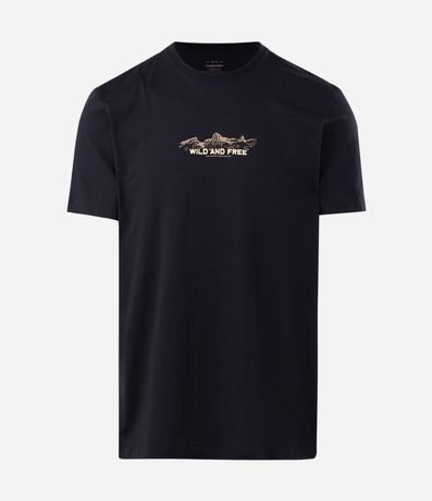 Ref: Camiseta masculina confeccionada em algodão mais sustentável, gola redonda, manga curta. Peça no modelo comfort com estampa lettering.