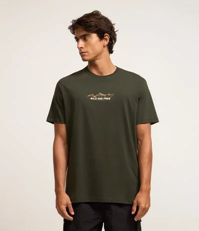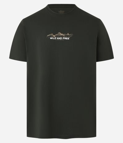 Ref: Camiseta masculina confeccionada em algodão mais sustentável, gola redonda, manga curta. Peça no modelo comfort com estampa lettering.