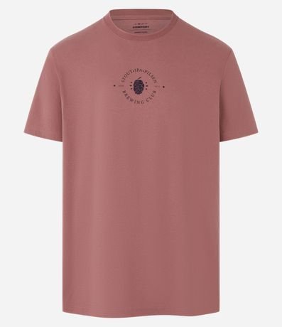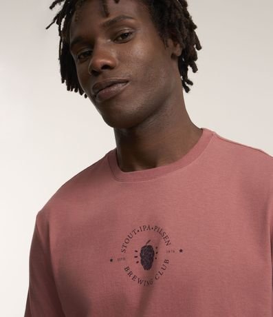 Ref: Camiseta masculina em modelo comfort, com gola redonda e mangas curtas. Possui estampa de lúpulo com lettering de estilos de cerveja.