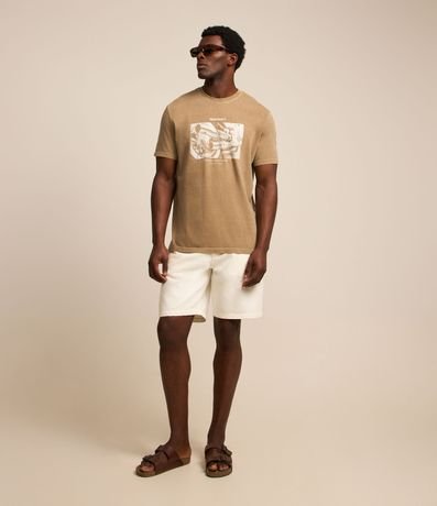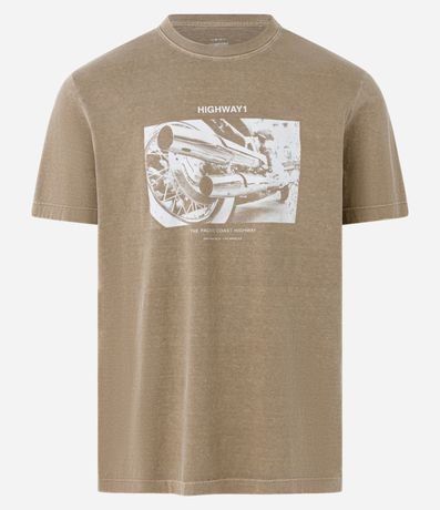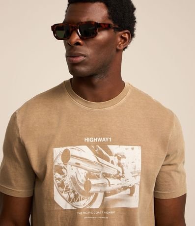 Ref: Camiseta masculina confeccionada em algodão mais sustentável, gola redonda, manga curta. No modelo comfort peça contém estampa com a imagem de uma motocicleta na estrada.