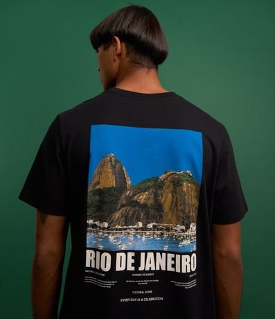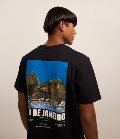 Ref: Camiseta masculina confeccionada em algodão mais sustentável, gola redonda e manga curta. Peça no modelo comfort com estampa de photoprint com imagem do Rio de Janeiro.