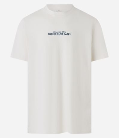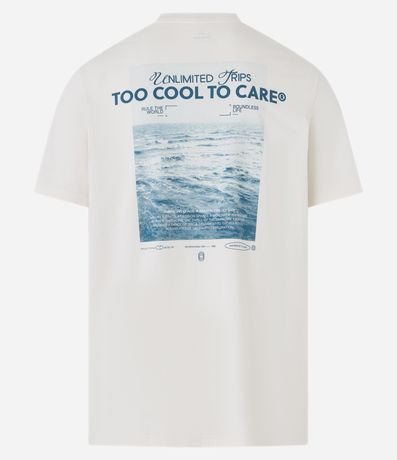 Ref: Camiseta masculina no modelo comfort, com gola redonda, manga curta. Peça contém estampa localizada e photoprint nas costas com frase too cool, to care.