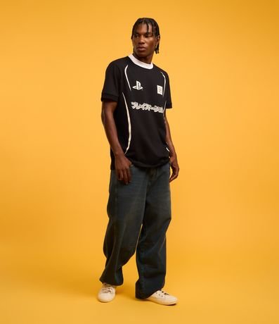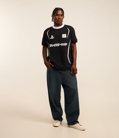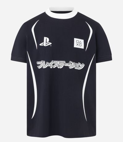 Ref: Camiseta masculina confeccionada em algodão mais sustentável com boas práticas ambientais, no modelo comfort, com gola redonda e manga curta. Peça com estampa lettering em homenagem a marca playstation.