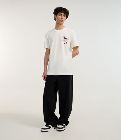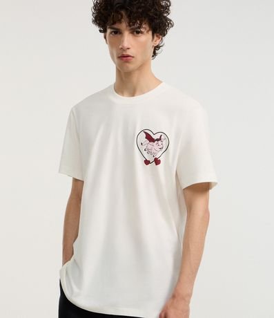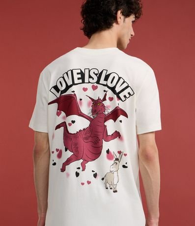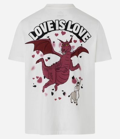 Camiseta masculina confeccionada em algodão mais sustentável através de boas práticas ambientais, no modelo comfort. Possui gola redonda, manga curta, estampa do desenho Shrek e estampa lettering "Love is love" frontais e traseiras.