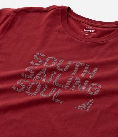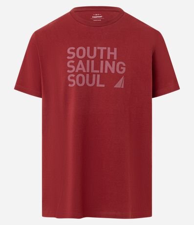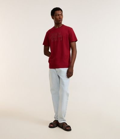 Ref: Camiseta masculina confeccionada em algodão mais sustentável através de boas práticas ambientais, no modelo comfort. Possui gola redonda, manga curta e estampa lettering.