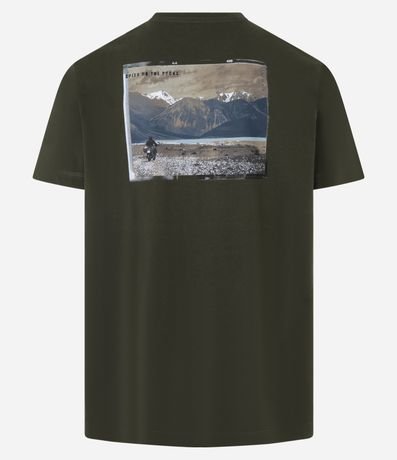 Camiseta masculina, modelo comfort, confeccionada em algodão mais sustentável, com mangas curtas e estampa frente e costas "Speed on the rocks".