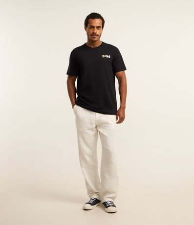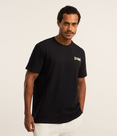 Ref: Camiseta masculina confeccionada em algodão mais sustentável com boas práticas ambientais. Peça no modelo comfort com gola redonda, manga curta e estampa lettering Xodó.