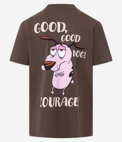Camiseta masculina modelo comfort em algodão e Processo mais sustentável: Boas práticas ambientais, com estampa do personagem Coragem, o Cão Covarde, mangas curtas e gola redonda, é perfeita para compor looks casuais com conforto e estilo.