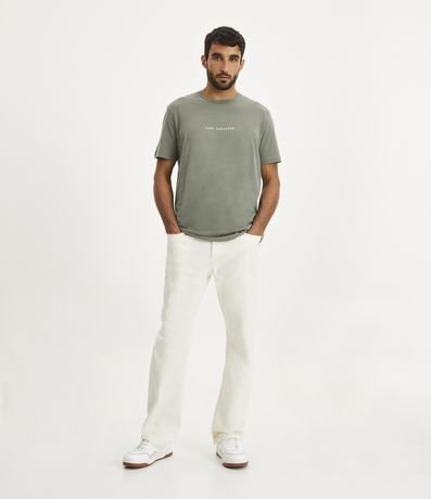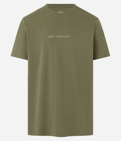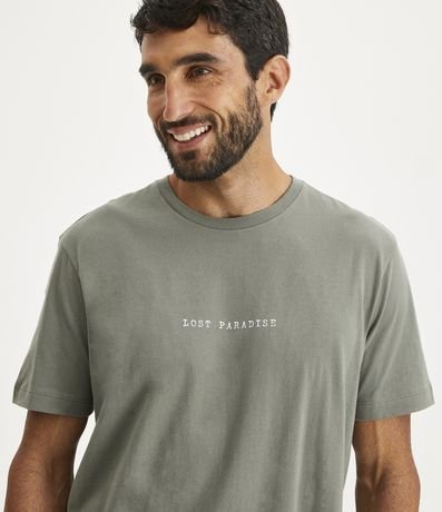 Ref: Camiseta masculina, modelo comfort, confeccionada em meia malha, com gola redonda, mangas curtas e estampa minimalista de lettering "Lost Paradise".